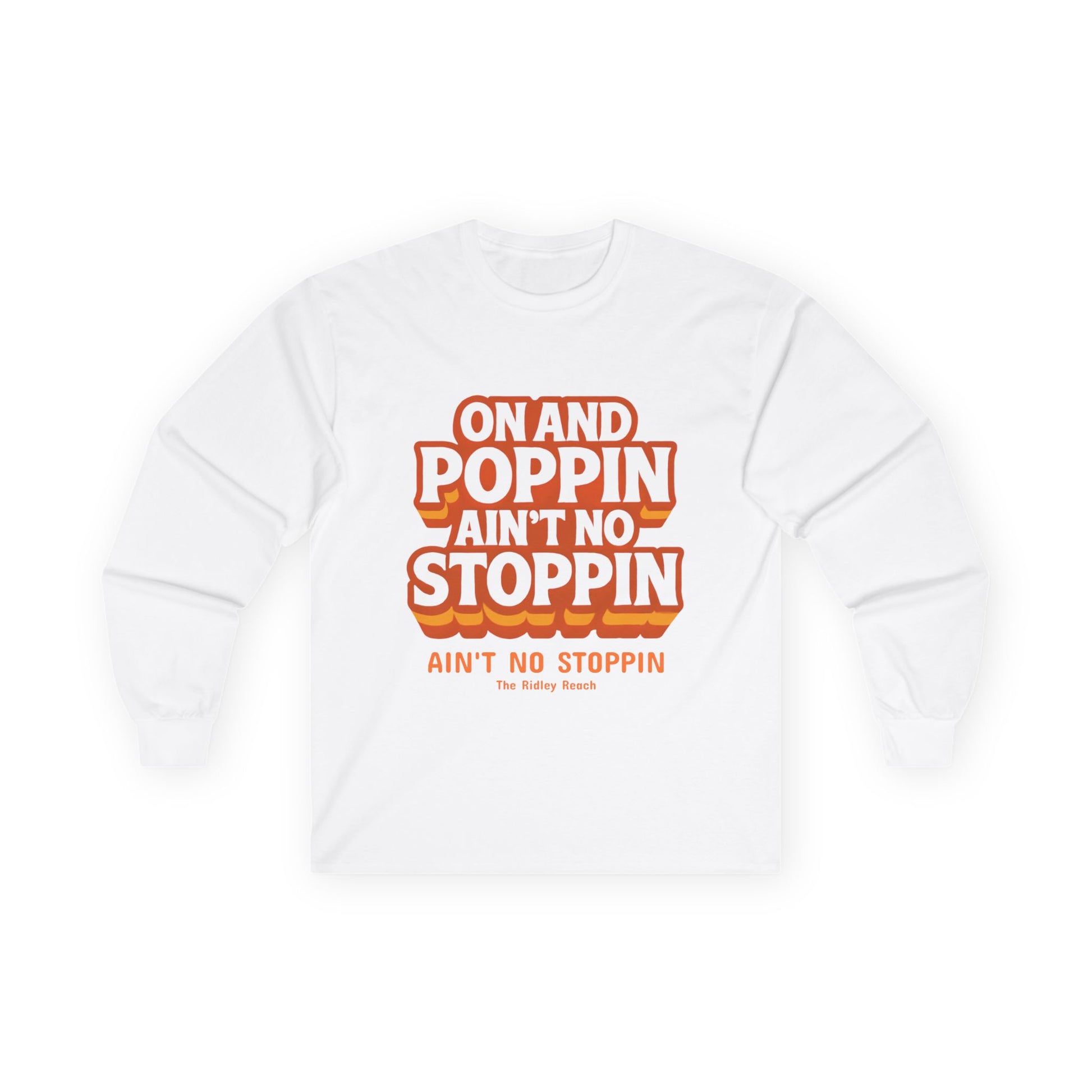 Unisex Long Sleeve Tee - "On and Poppin' Ain't No Stoppin'" - Fun, Casual Wear, Perfect for Parties, Gifts, Celebrations, Everyday Style